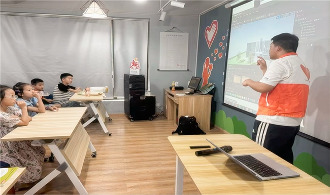 面对一群初次接触编程的孩子,“芯”苗研学团的成员们巧妙地将晦涩的技术术语转化为生动有趣的日常比喻:把 Python 代码比作“给电脑的魔法指令”,把 UE 引擎形容为“搭建梦幻世界的积木盒”。课堂上,孩子们通过“数字炸弹游戏”理解变量概念,借助“格子跳跃”掌握循环结构,在轻松愉快的氛围中逐步建立起对编程的初步认知。“原来代码真的能让电脑‘听话’!”一位小朋友兴奋地说道。这种寓教于乐的教学方式,不仅激发了孩子们的学习兴趣,也让他们真切感受到科技的魅力。