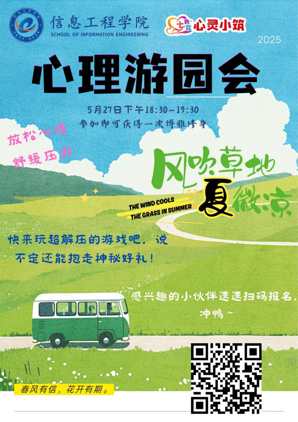 本次心理游园会以智育启思维、体育强体魄、美育润心灵、德育育品格、劳育练毅力,全方位助力学生健康成长。信息工程学院将继续创新心理健康教育形式,让青春在阳光中扬帆,让心灵在挑战中茁壮!